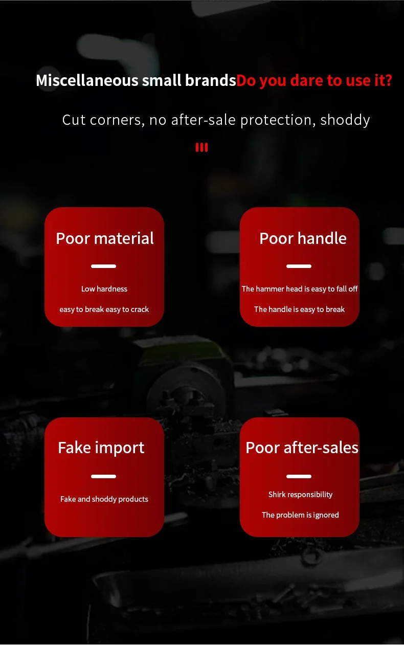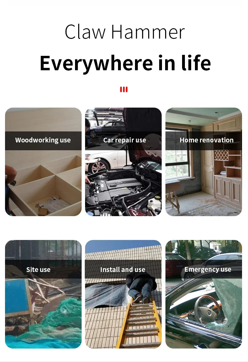 1. A cabeça do martelo é feita do aço carbono alto, da boa dureza e da desgaste-resistência. 2.V-tipo cabeça do martelo pode remover pregos facilmente. 3. alça de borracha antiderrapante com design ergonômico, economia de trabalho e confortável de segurar. 4. Adequado para casa, indústria, carpintaria, emergência, etc.
